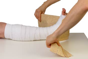 معمولا آتلبندی، تخته شکستهبندی یا گچ گرفتن برای محفاظت از ناحیه آسیبدیده استفاده میشوند. بعضیمواقع اجازه میدهند ورم پا بخوابد و این اقدامات بعد از چند روز صورت گیرد (ممکن است آتلبندی تا زمان فیت شدن گچگیری، باز نشود).